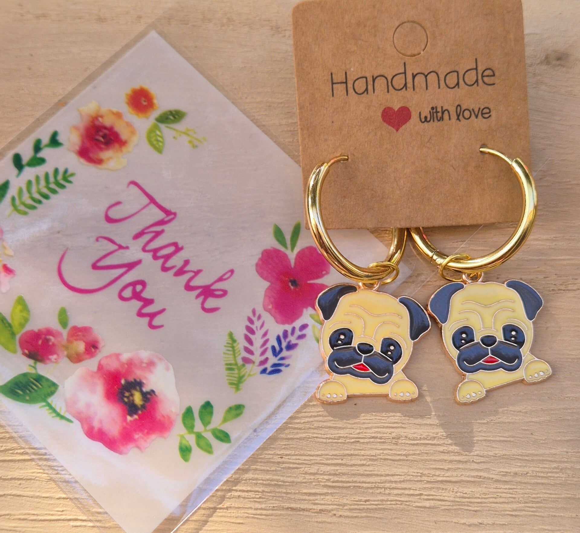 🌸 Chaque paire est soigneusement emballée avec une jolie carte « Handmade with love » et un petit mot de remerciement fleuri.