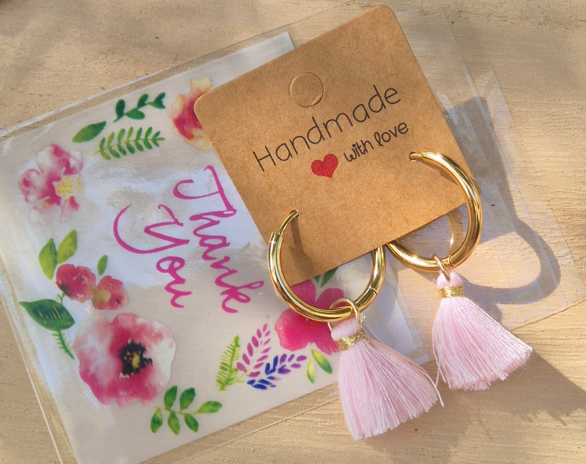 🌸 Créoles dorées à pampilles - pompon couleur et or 🌸