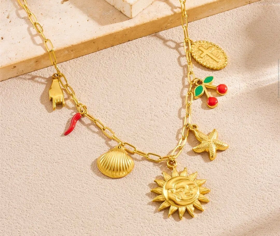 ☀️ Collier Charms Soleil & Symboles – Acier Inoxydable et Hypoallergénique ☀️