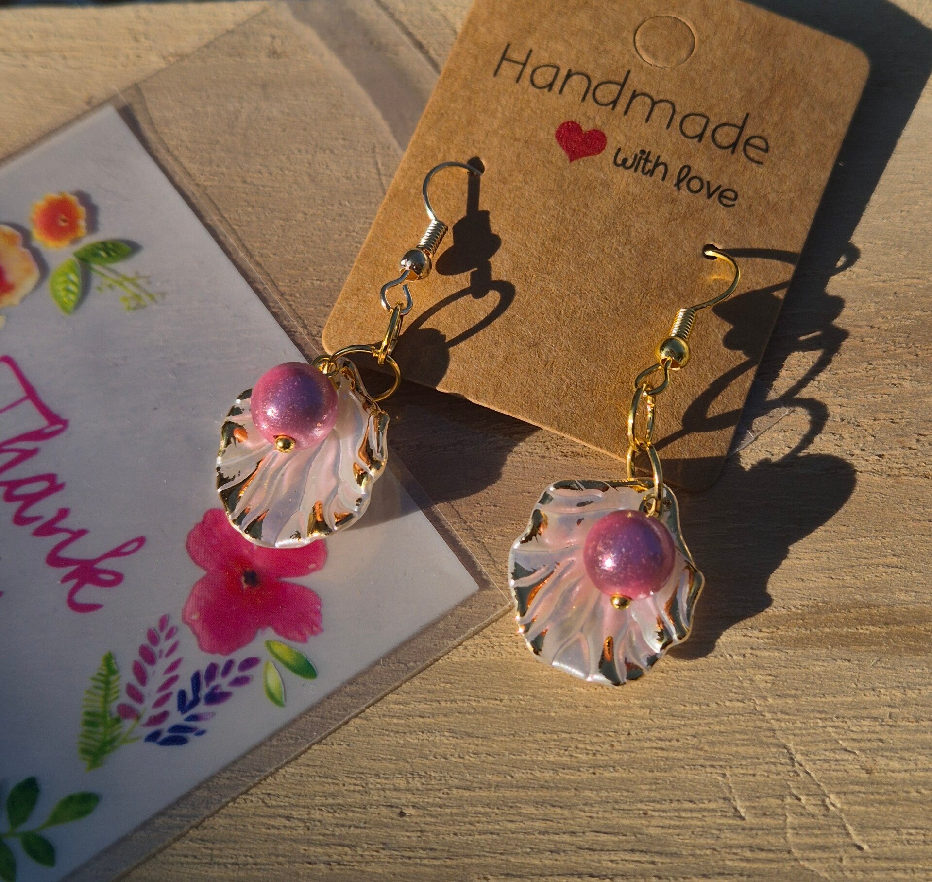 Boucles d'oreilles dorées – Pétales nacrés et perle magique 🌸✨