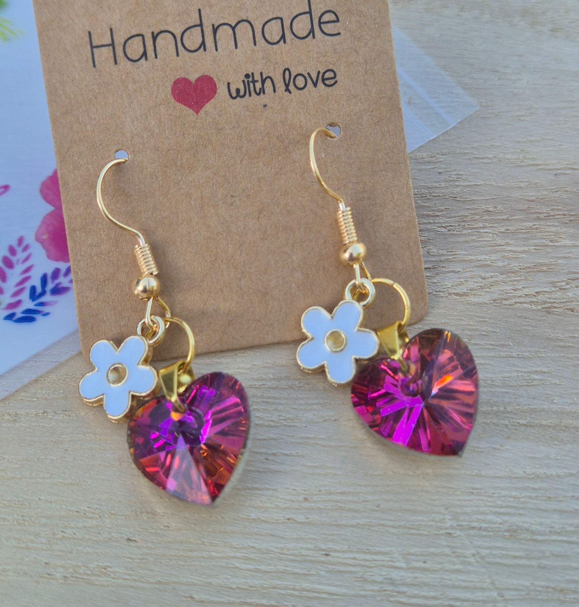 Intenses et lumineuses, ces boucles d’oreilles se composent d’un cœur en cristal dégradé orange, rose et pourpre qui capte la lumière sous tous les angles.