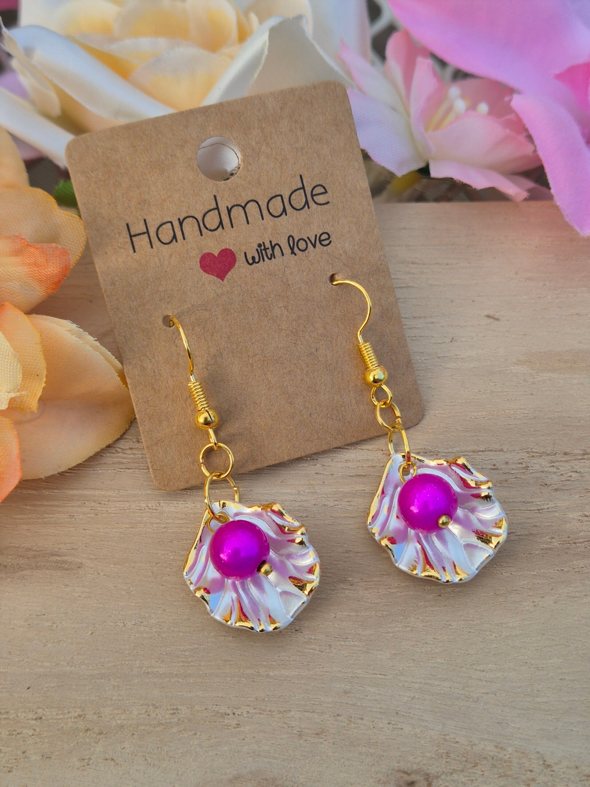Coquillage en resine perle magique rose vif