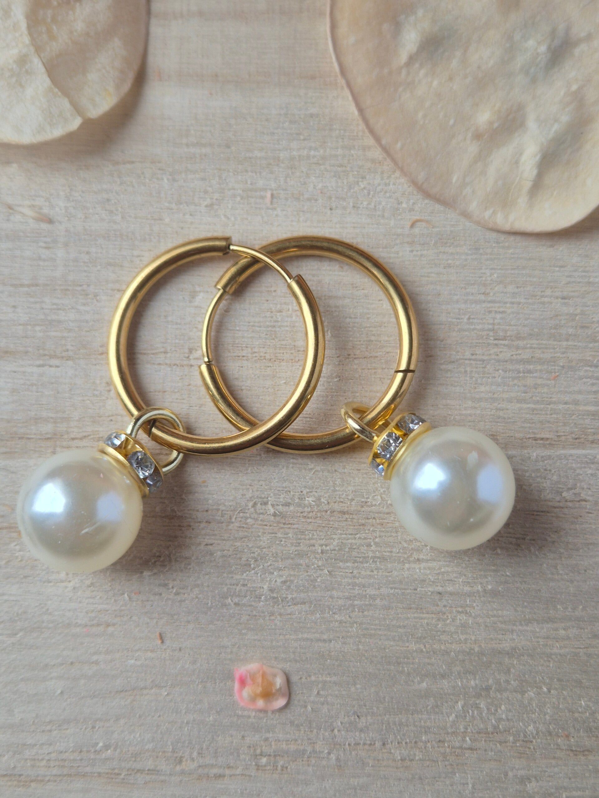 - 🩵1 paire grosse perle blanche nacrée surmontée de cercle en strass.